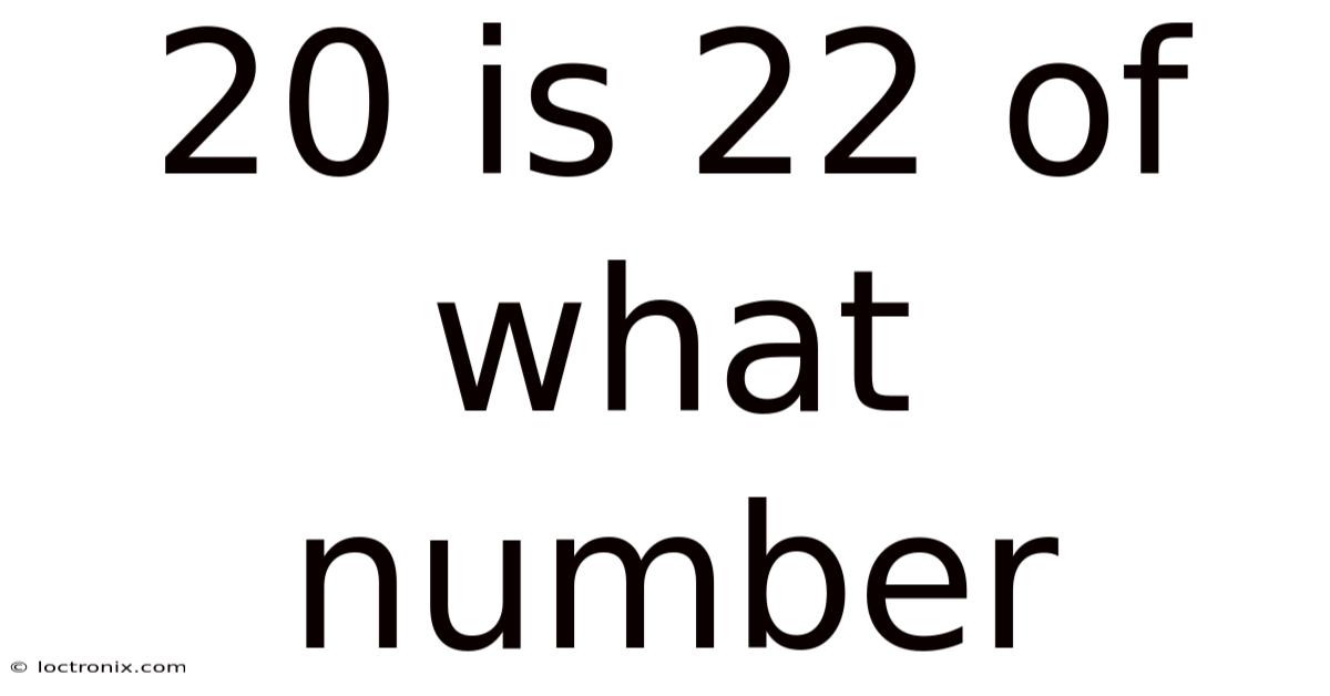 Before diving into the calculation, it's essential to understand what the question is really asking. When we say "20 is 22% of what number," we are essentially looking for a whole value where 22% of that value equals 20. This is a classic reverse percentage problem where we know the percentage and its result, but we need to find the original number No workaround needed..