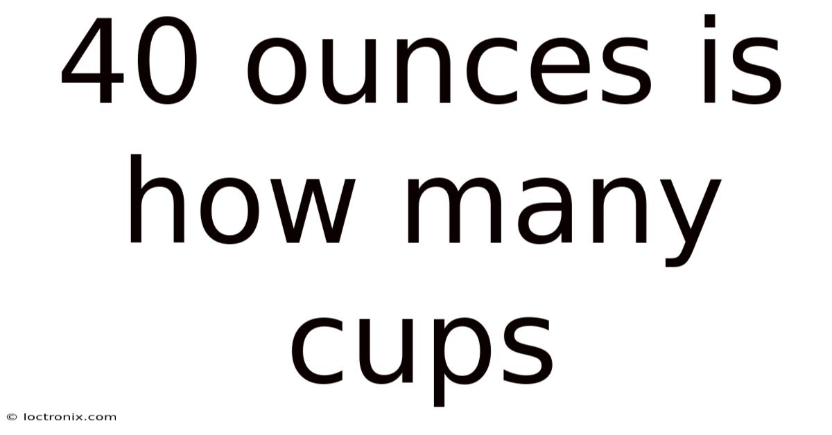 Wondering 40 ounces is how many cups? The quick answer is that 40 fluid ounces equals exactly 5 cups in the US customary measurement system. Whether you are scaling up a family recipe, preparing beverages for a large gathering, or simply trying to understand kitchen measurements, knowing how to convert ounces to cups accurately can save time and prevent costly mistakes. This guide breaks down the conversion process, explains the science behind liquid measurements, and provides practical tips to help you measure with confidence every time Which is the point..