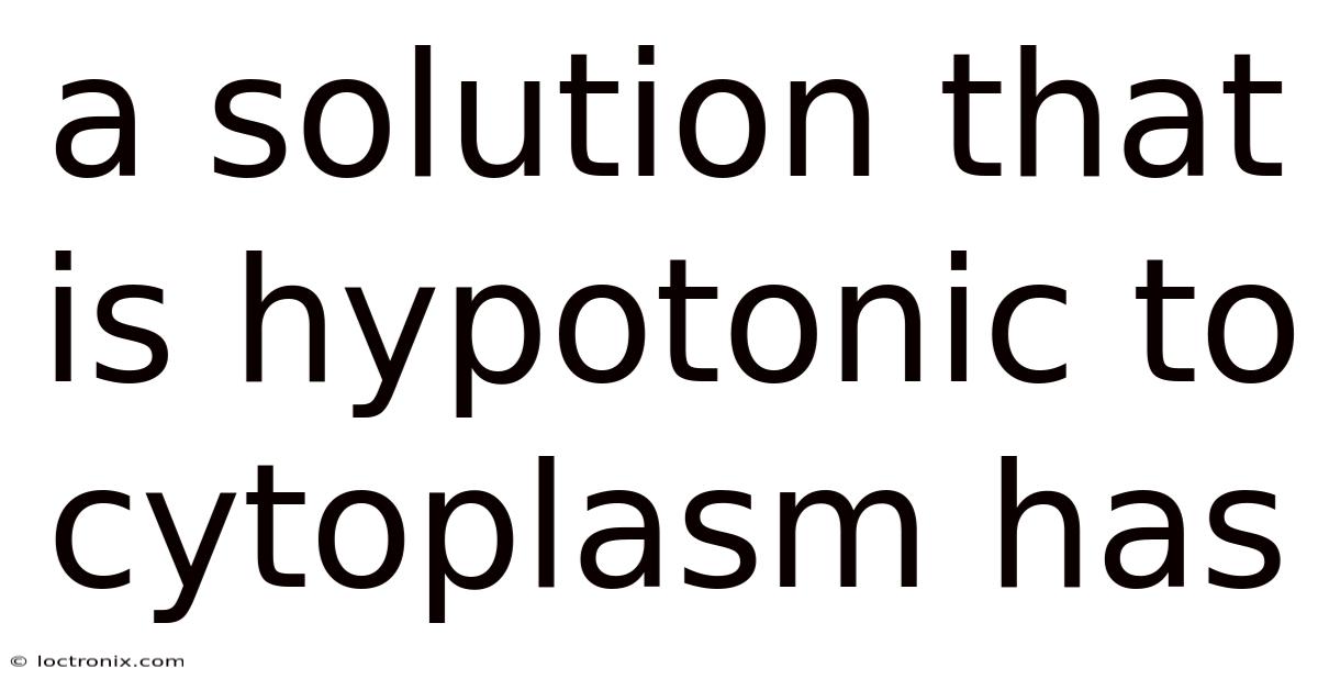 Cells exist in a delicate balance with their surrounding environment, a state governed by the principles of osmosis and tonicity. The relationship between the internal fluid of a cell, known as the cytoplasm, and the external solution determines the cell's volume, shape, and ultimately, its survival. Among the various classifications of external solutions, a hypotonic solution holds particular significance due to its ability to cause water to flood into the cell. This article explores the definition, mechanism, biological consequences, and practical examples of a solution that is hypotonic to cytoplasm And that's really what it comes down to..