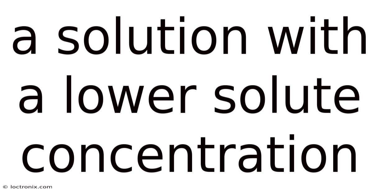 A Solution Witha Lower Solute Concentration: Understanding Dilution and Its Implications