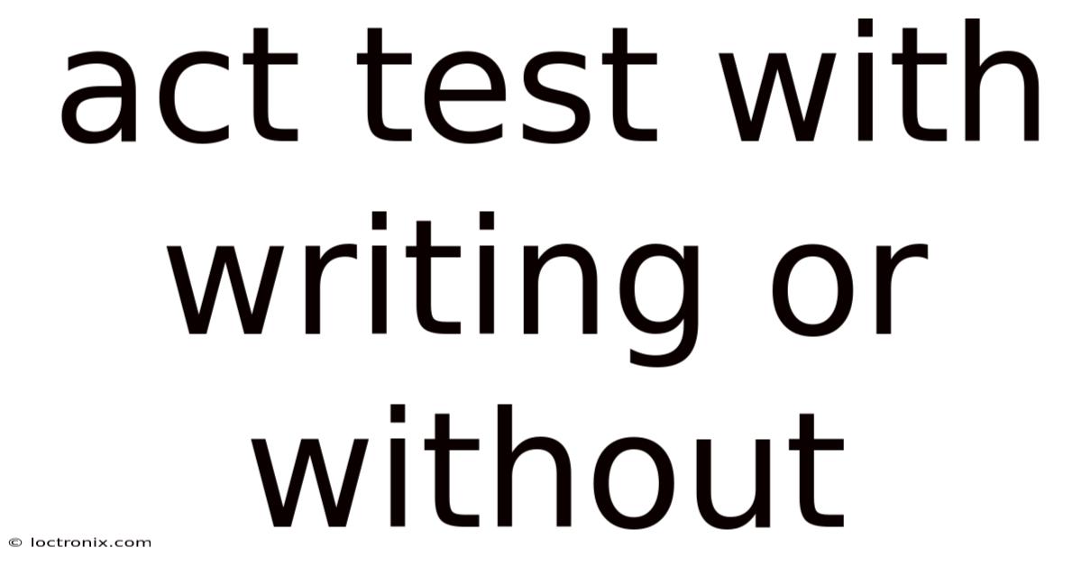 The decision to take the ACT with or without Writing is not a matter of which option is universally better, but which is strategically smarter for the individual student. It hinges on a triad of considerations: the specific requirements of target colleges, the student’s own writing aptitude and test endurance, and the overall narrative they wish to present in their application. By researching policies thoroughly, honestly assessing their skills, and aligning their test plan with their academic goals, students can make a choice that optimizes their composite score while strengthening their candidacy. The bottom line: the "right" decision is the one that best serves the student’s unique path to higher education And that's really what it comes down to..
