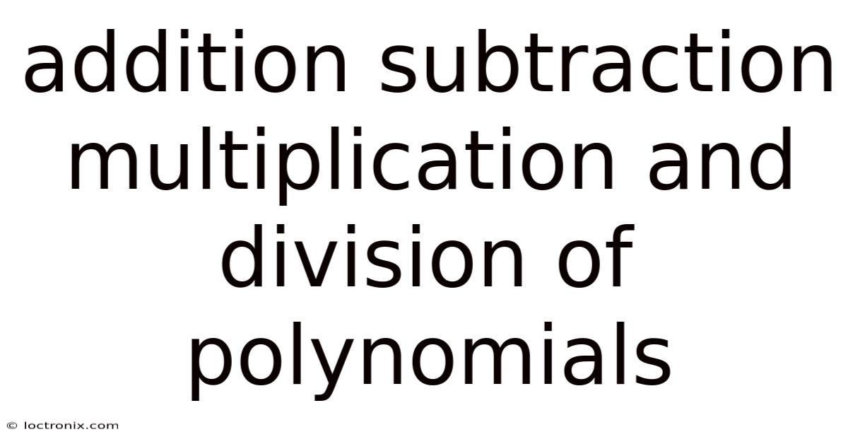 The addition subtraction multiplication and division of polynomials form the backbone of polynomial arithmetic. Whether you are simplifying expressions, solving equations, or modeling real phenomena, understanding how to combine, reduce, or expand polynomials is essential. The following sections break down each operation, provide clear procedures, and illustrate practical examples Practical, not theoretical..