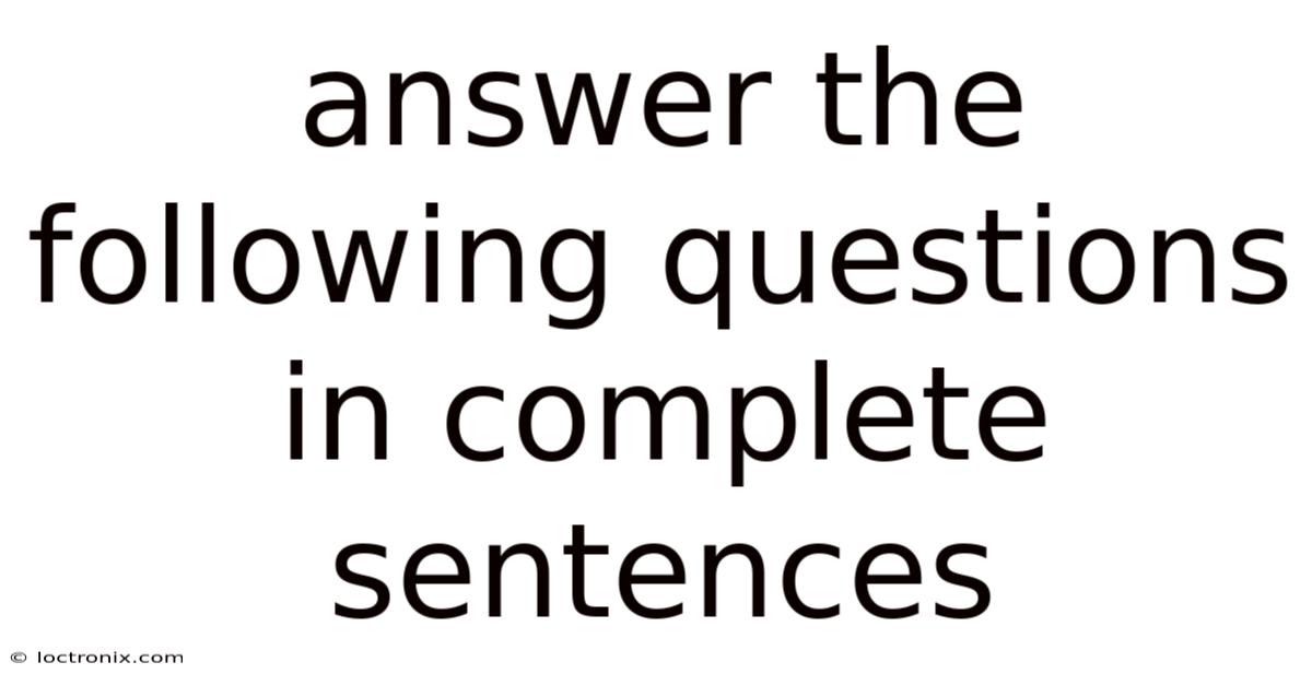 Writing clear, complete sentences is a foundational skill for academic success, professional communication, and everyday interactions. Mastering this skill not only improves your grades but also boosts confidence in expressing ideas logically and persuasively. When a teacher, examiner, or colleague asks you to answer the following questions in complete sentences, they expect more than a single word or fragment; they want a full thought that includes a subject, a verb, and, when necessary, supporting details. This article explains why complete‑sentence answers matter, outlines the essential components of a well‑crafted response, and provides step‑by‑step strategies, examples, and frequently asked questions to help you answer any question with precision and fluency.