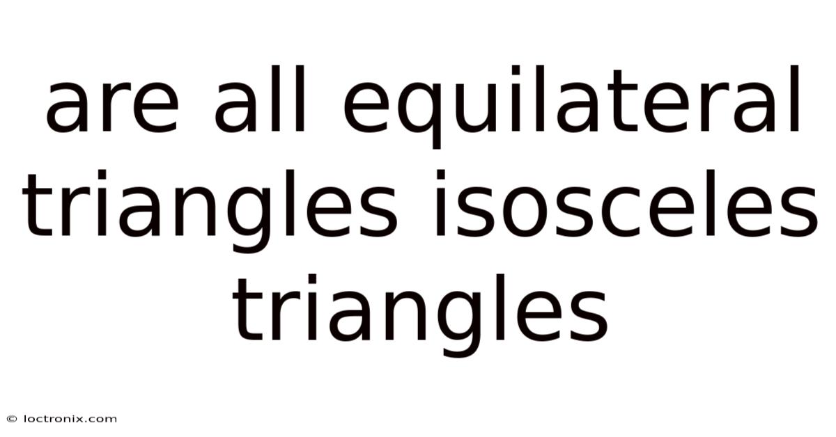 The question are all equilateral triangles isosceles cuts to the heart of geometric classification and often sparks debate among students and teachers alike. This article explores the definitions, logical connections, and mathematical proofs that clarify whether every equilateral triangle automatically qualifies as an isosceles triangle, providing a clear answer backed by rigorous reasoning and practical examples Surprisingly effective..
