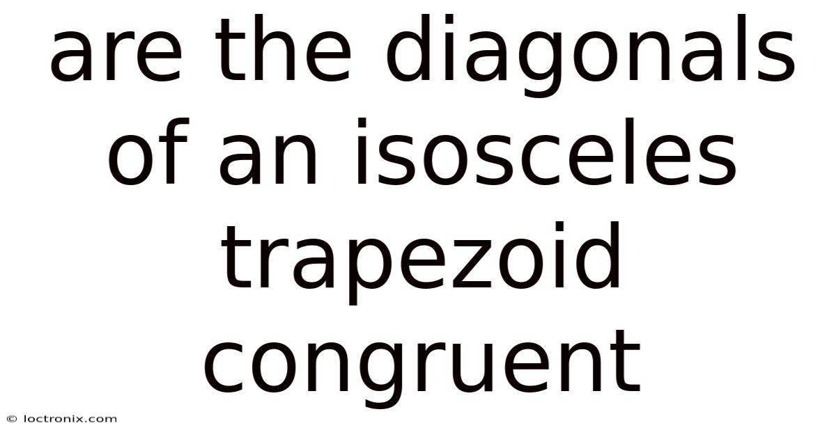 To recap, the diagonals of an isosceles trapezoid are indeed congruent. This is a fundamental property that distinguishes isosceles trapezoids from other trapezoids and serves as a powerful tool in geometry That's the part that actually makes a difference..
