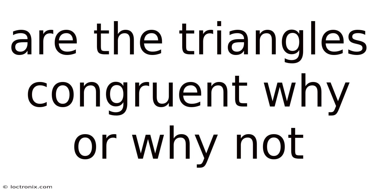 To answer the question "are the triangles congruent why or why not," mathematicians follow a structured analytical process. This process involves identifying known information, selecting the appropriate congruence criterion, and verifying that the specific conditions of that criterion are met Simple as that..