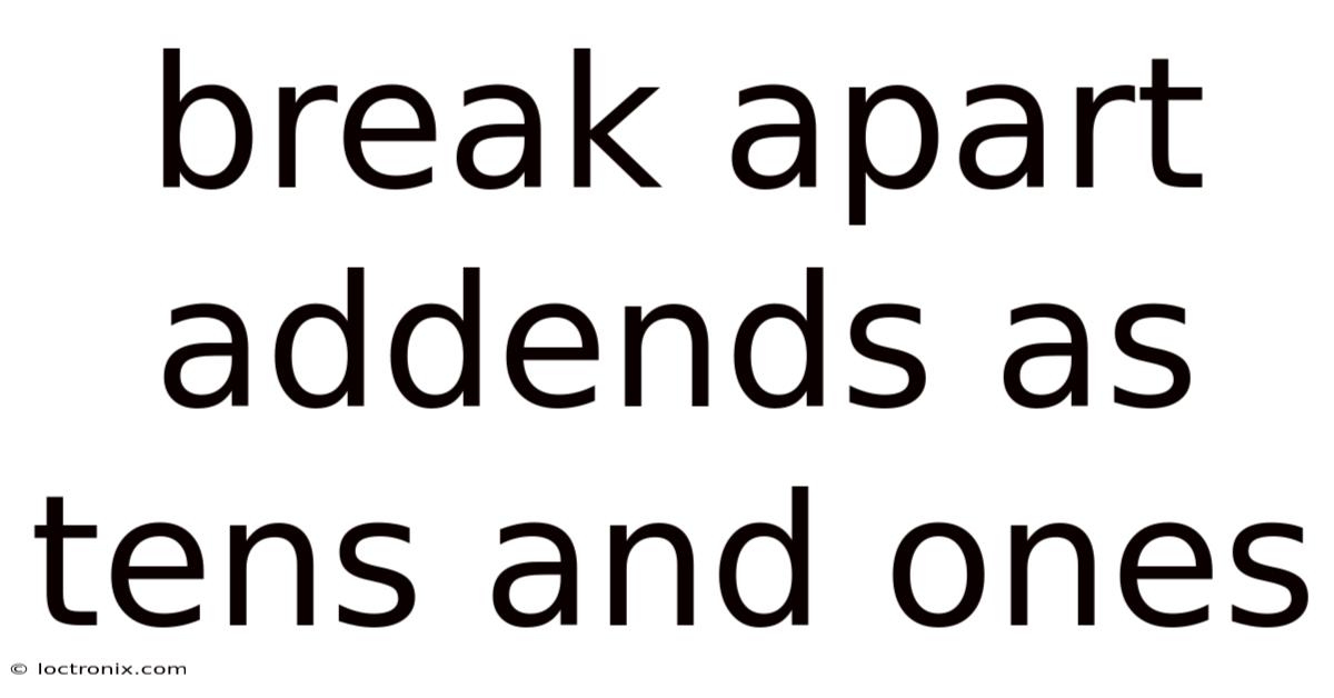 Breaking apart addends as tens and ones is more than just a math trick—it's a powerful tool for building number sense and computational fluency. By understanding how numbers are composed, students gain confidence and flexibility in their mathematical thinking. With consistent practice and the right support, this strategy can become a natural part of how students approach addition and beyond It's one of those things that adds up..