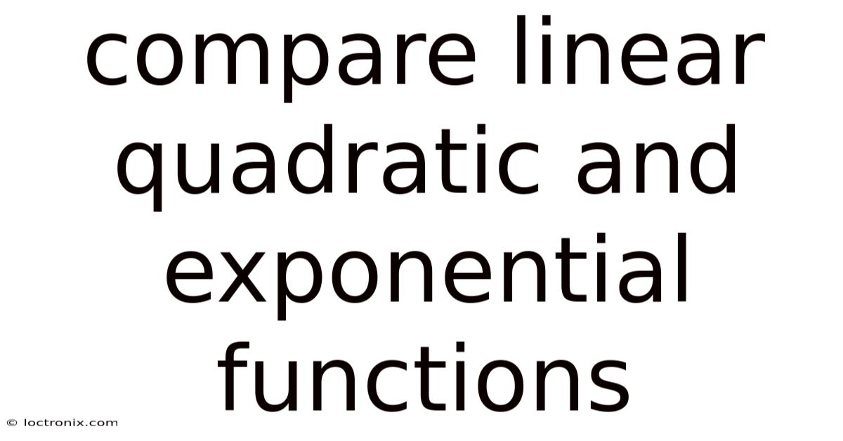 When you see a graph with a straight line, a parabolic curve, or a steeply rising curve, you are looking at three distinct mathematical families: linear, quadratic, and exponential. Each has its own formula, behavior, and typical use cases. By comparing them side‑by‑side, you’ll learn how to spot which function best describes a set of data and why the choice matters for predictions and decision‑making Not complicated — just consistent..
