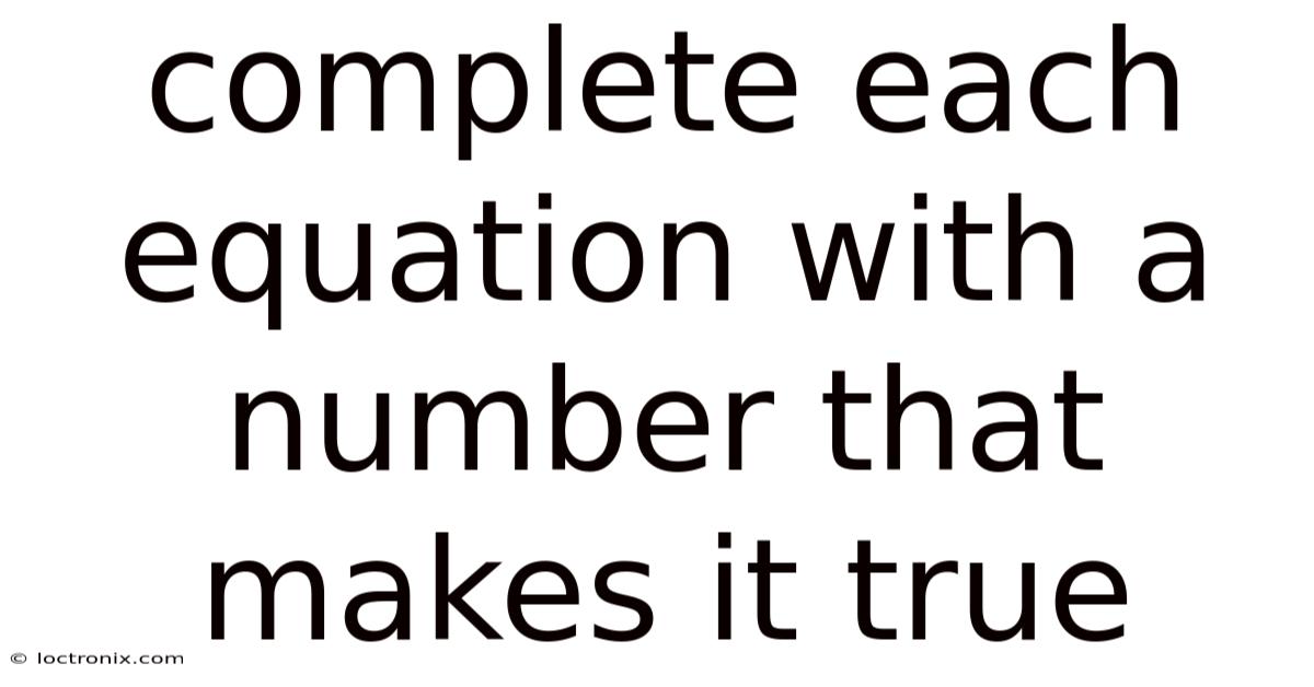 Complete Each Equation with a Number That Makes It True