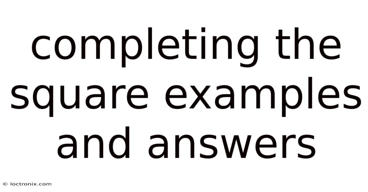 Completing The Square Examples And Answers