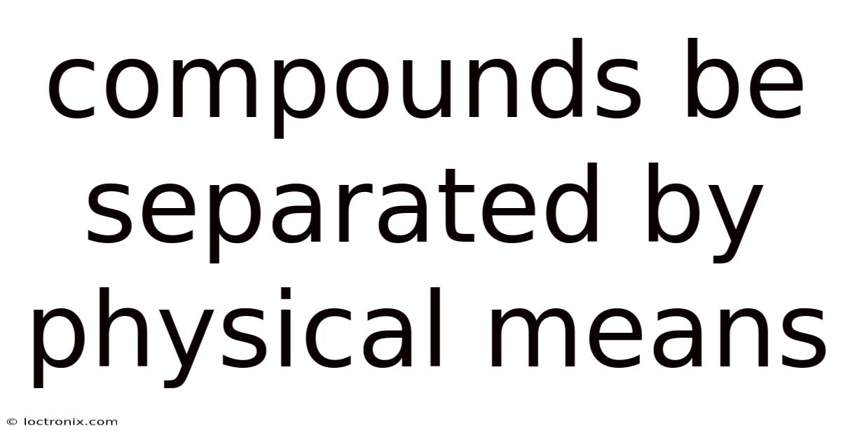 Compounds Be Separated by Physical Means: Methods, Principles, and Applications