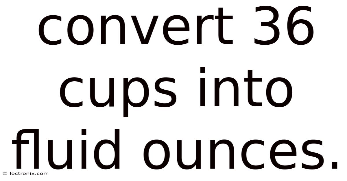 - 36 cups = 288 fluid ounces (because 1 cup = 8 fl oz).
