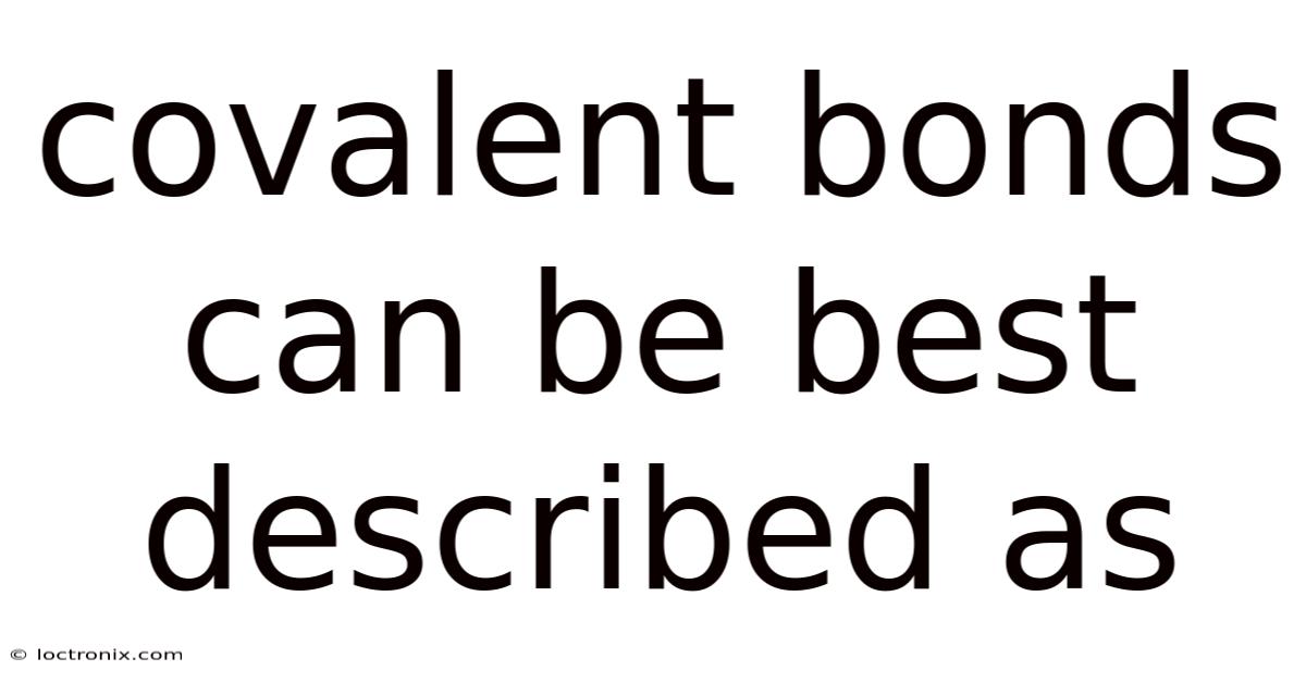 Covalentbonds can be best described as the sharing of electron pairs between atoms, a fundamental concept that underpins the structure of most molecules we encounter in everyday life. Still, in this article we will explore the underlying principles, the mechanisms of bond formation, the various categories of covalent interactions, and the real‑world implications of these bonds. This definition captures the essence of how atoms achieve stability by filling their outer electron shells, yet it only scratches the surface of a rich and nuanced topic. By the end, you will have a clear, comprehensive understanding of why covalent bonding is considered the glue that holds molecules together And it works..