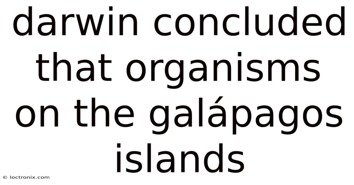 Charles Darwin concluded that organisms on the Galápagos Islands evolved through descent with modification driven by natural selection. Worth adding: this insight emerged not as a sudden revelation but as a carefully reasoned synthesis of field observations, specimen comparisons, and geological context gathered during and after the voyage of HMS Beagle. The Galápagos became a living laboratory where isolation, environmental variety, and competition combined to shape distinct yet related forms. Darwin’s conclusion transformed how humanity understands life’s diversity, placing change over time at the center of biological explanation Easy to understand, harder to ignore..