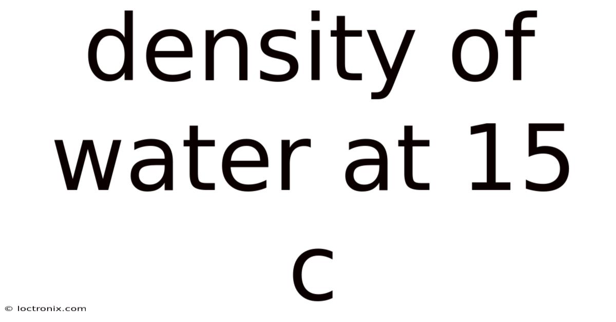 Understanding the density of water at 15°C is fundamental to grasping concepts in physics, chemistry, and environmental science. This specific temperature represents a critical point where water's mass per unit volume reaches a measurable state that differs from its behavior at standard reference points like 4°C or 20°C. Because of that, density, defined as mass divided by volume, is not a fixed property for water; it is dynamic and changes with temperature. Also, at 15 degrees Celsius, water exhibits a density that is essential for calibrating scientific instruments, designing engineering systems, and understanding natural processes. This article explores the precise value, the underlying scientific principles, and the practical implications of this thermal state.