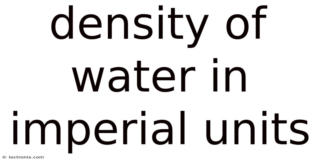 Understanding the density of water in imperial units is crucial for fields ranging from civil engineering to everyday household tasks in regions where imperial measurements remain standard. On top of that, while the metric system defines water's density as approximately 1 gram per cubic centimeter (g/cm³) at 4°C, imperial units express this fundamental property in pounds per cubic foot (lb/ft³), a conversion that bridges scientific precision with practical application in the United States, United Kingdom, and other nations retaining imperial traditions. This article provides a comprehensive exploration of water's density in imperial terms, covering its exact value, temperature dependence, practical applications, and measurement techniques, all designed to be accessible yet deeply informative Worth keeping that in mind..