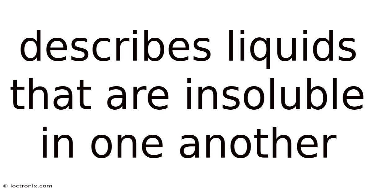 The term "insoluble" in the context of liquids is often used interchangeably with "immiscible" to describe this lack of interaction. While solubility usually refers to a solid dissolving in a liquid, in the realm of fluid dynamics and liquid-liquid interactions, we focus on the inability of one liquid phase to penetrate or dissolve within another.