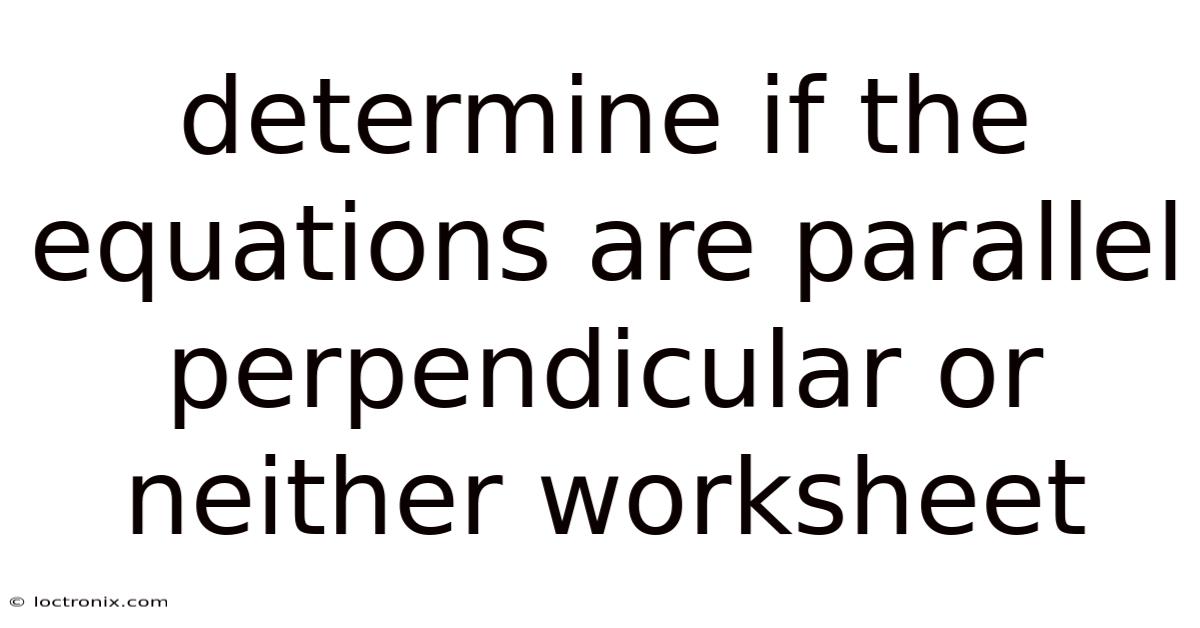 Determine if the Equations are Parallel, Perpendicular, or Neither: A Complete Worksheet Guide