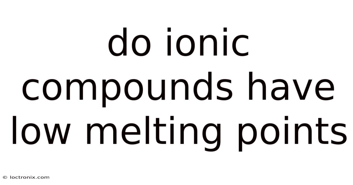 The low melting points of many ionic compounds are rooted in their molecular architecture and the nature of their bonding. In crystalline structures, the lattice’s stability is maintained through the collective effort of countless ion interactions, each contributing to the overall cohesion. That said, when thermal energy exceeds the lattice’s energy, the system undergoes