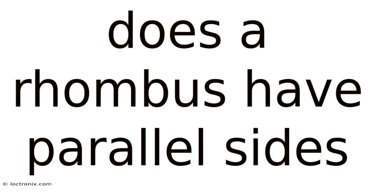 In summary, a rhombus does indeed have parallel sides. This is a fundamental property that results from its definition and geometric structure. The equal side lengths and symmetry of a rhombus ensure that opposite sides are always parallel, making it a special type of parallelogram. Understanding this property is essential for anyone studying geometry or working with shapes in mathematics.