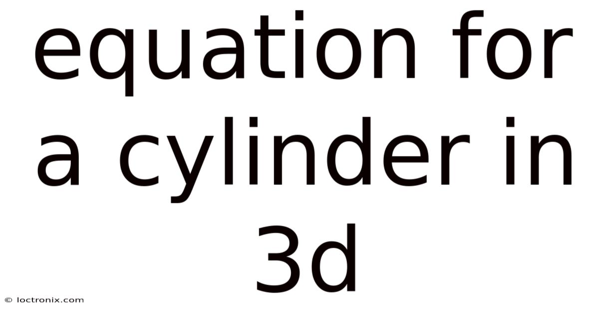 When dealing with geometric shapes, the equation for a cylinder is often defined by its radius and height. Because of that, the cylinder is essentially a three-dimensional object formed by rotating a circle around a central axis. The key to understanding this equation lies in recognizing the relationship between the radius of the base and the dimensions of the cylinder. By examining the properties of a circle and how it transforms under rotation, we can derive the formula that defines a cylinder in three-dimensional space Turns out it matters..
