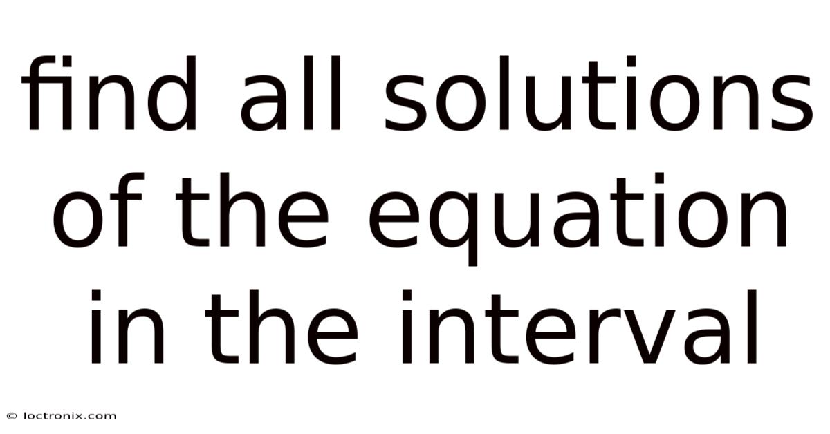 Find All Solutions Of The Equation In The Interval