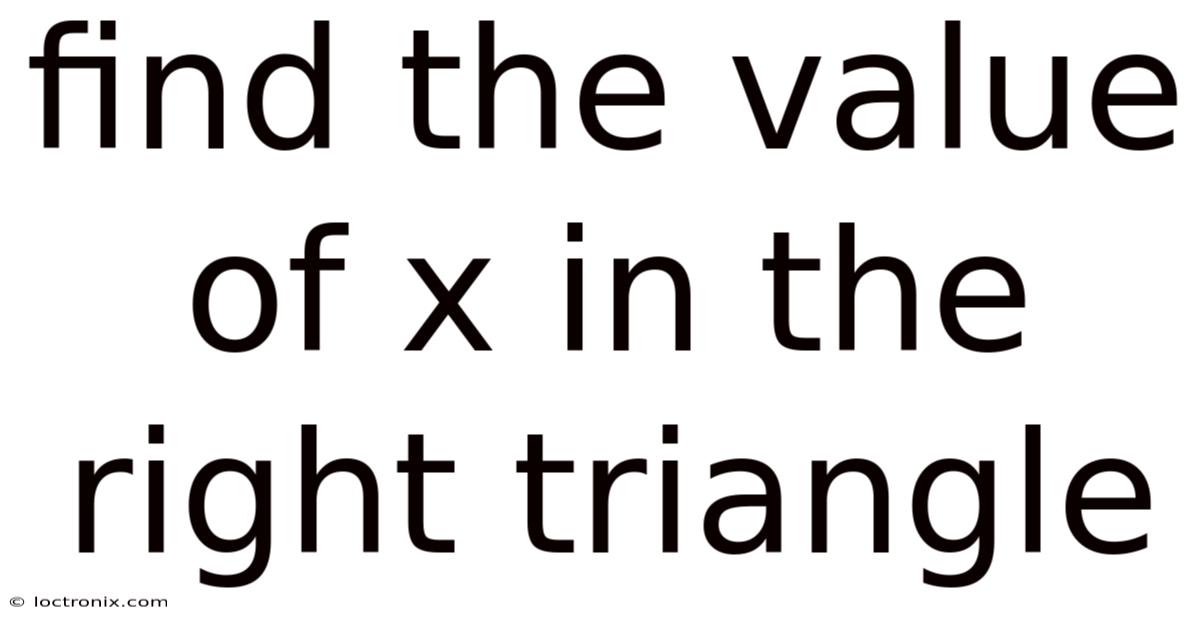 A right triangle is defined by one angle measuring exactly 90 degrees, which allows the use of the Pythagorean theorem and trigonometric ratios to relate the lengths of its sides. When a problem asks you to find the value of x in the right triangle, it typically means that one of the side lengths is unknown and must be determined using the given information. Understanding how to manipulate these relationships is essential for solving a wide range of geometry problems, from basic classroom exercises to real‑world applications such as construction and navigation Turns out it matters..