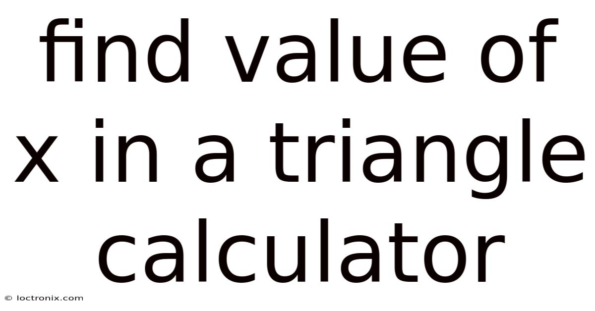 Finding the value of x in a triangle is a fundamental geometry problem that arises in various mathematical contexts, from basic homework assignments to advanced engineering applications. A find value of x in a triangle calculator simplifies this process by leveraging mathematical algorithms to solve for unknown angles or sides quickly. Whether you're a student, educator, or professional, these tools provide instant solutions for triangles using given parameters like side lengths, angles, or area. This guide explores how to use such calculators, the underlying principles, and practical applications to ensure accurate results efficiently Nothing fancy..