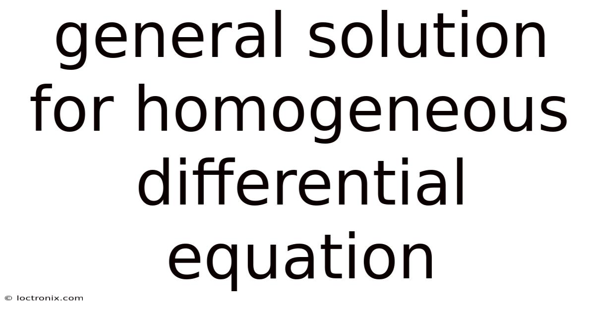 The general solution for homogeneous differential equations is a fundamental concept in the study of ordinary differential equations (ODEs). This structure allows for a systematic approach to solving them through substitution methods. And the general solution typically involves finding a family of functions that satisfy the equation for all values within a specific domain. That said, understanding this solution is crucial for applications in physics, engineering, and other fields where dynamic systems are modeled. Consider this: these equations are characterized by their ability to be expressed in terms of the ratio of the dependent variable to the independent variable, often in the form dy/dx = f(y/x). By mastering the techniques to derive the general solution, one gains the ability to analyze and predict the behavior of such systems effectively Simple, but easy to overlook..