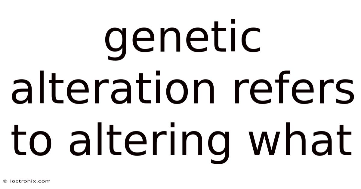 Genetic alteration refers toaltering what—a concept that lies at the intersection of biology, technology, and ethics. At its core, genetic alteration involves modifying the genetic material of an organism, which is the blueprint of life encoded in DNA. This process can occur naturally through mutations or be intentionally engineered by humans using advanced scientific techniques. Understanding what genetic alteration refers to is crucial in grasping its implications, applications, and the transformative potential it holds for medicine, agriculture, and beyond The details matter here. Still holds up..