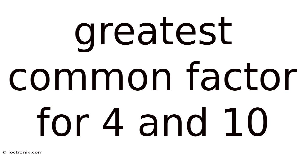 The greatest common factor for4 and 10 is the largest positive integer that divides both numbers without leaving a remainder. Which means in this article we will explore what the greatest common factor (GCF) means, how to determine it for the pair 4 and 10, the mathematical principles behind the process, and answer common questions that arise when learning about divisibility and factorization. By the end, you will have a clear, step‑by‑step understanding that you can apply to any pair of numbers.
