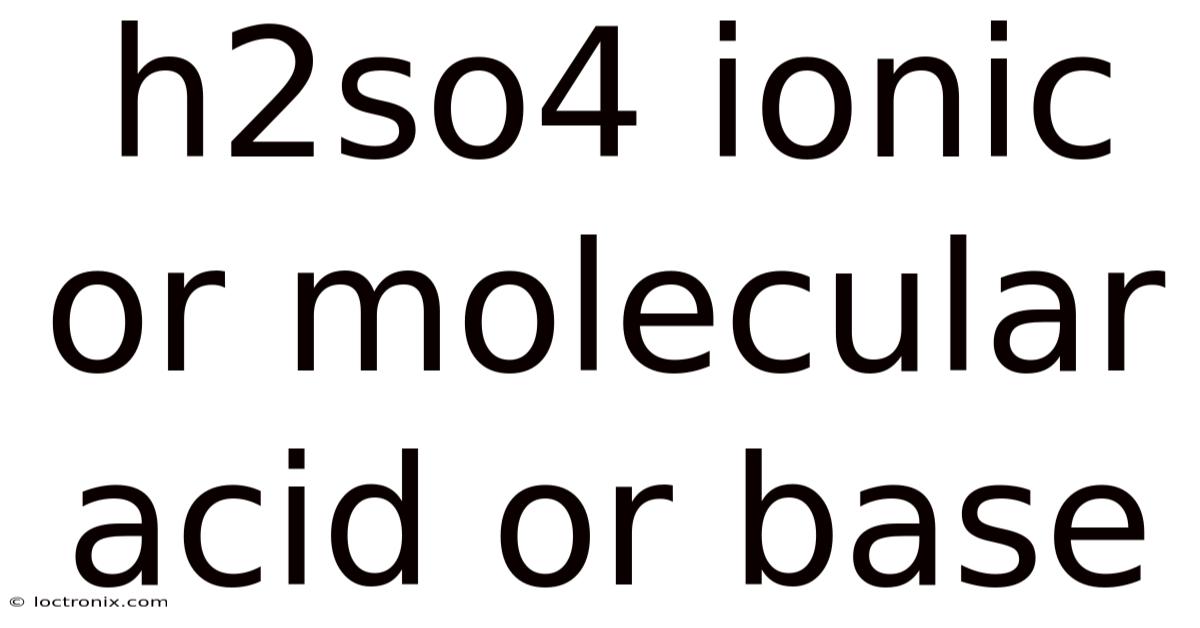 Is H2SO4 Ionic or Molecular? Understanding Its Acid-Base Behavior
