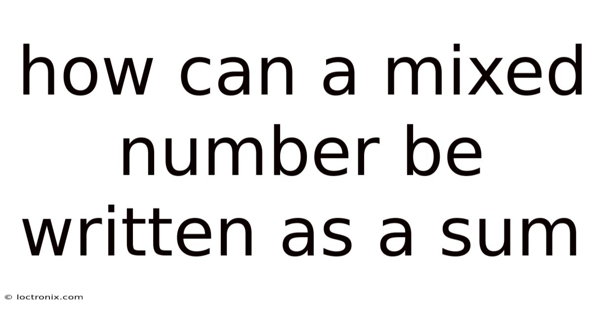 So, to summarize, the seemingly simple concept of a mixed number as a sum holds profound significance. It's more than just a notation; it's a powerful tool for representing quantities, simplifying calculations, and fostering a deeper understanding of numerical relationships. From basic arithmetic to complex real-world applications, mastering the composition and manipulation of mixed numbers empowers individuals to approach mathematical problems with greater confidence and precision. By embracing the diverse strategies for addition and interpretation, learners reach a versatile skill set that extends far beyond the classroom, equipping them to work through a world increasingly reliant on quantitative reasoning. The consistent practice and thoughtful application of these techniques are not merely exercises in computation, but investments in mathematical fluency and problem-solving prowess, ultimately paving the way for success in a wide range of academic and professional endeavors.