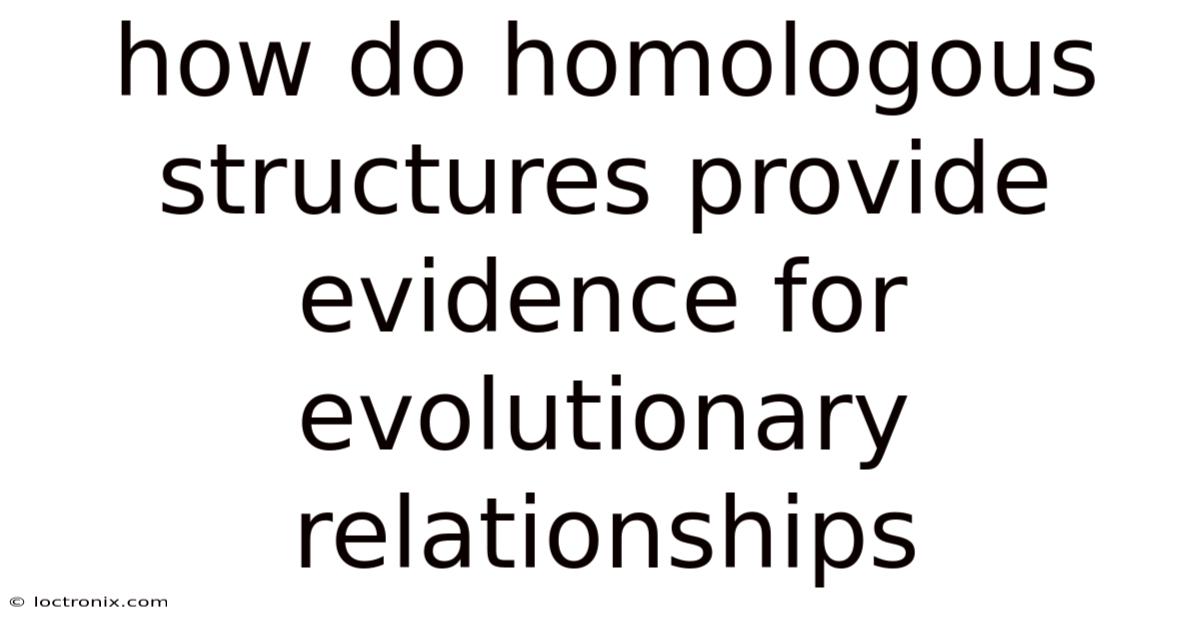 Pulling it all together, homologous structures provide compelling evidence for evolutionary relationships by revealing the shared ancestry of different species. These structures, which are similar in form and origin but may serve different functions, demonstrate how evolution has modified existing anatomical features to suit the needs of various organisms. Think about it: by studying homologous structures, scientists can trace the evolutionary history of life on Earth, construct phylogenetic trees, and gain insights into the mechanisms of evolution. The study of homologous structures not only deepens our understanding of the natural world but also has practical applications in fields such as medicine and conservation biology Worth keeping that in mind. Which is the point..