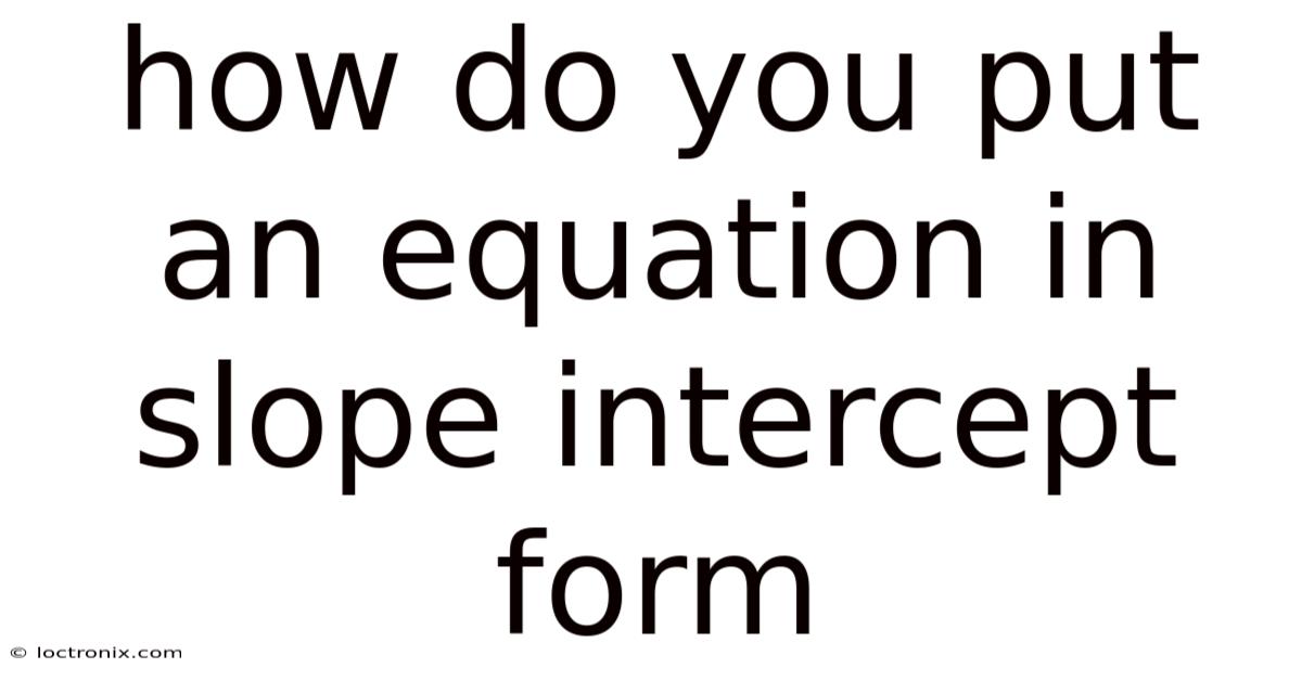 In this expression, m represents the slope of the line (how steep it is) and b is the y‑intercept (the point where the line crosses the y‑axis). Converting any linear equation to this format makes it easier to graph, compare lines, and solve real‑world problems such as predicting trends or calculating rates. This article walks you through the step‑by‑step process of rewriting an equation in slope‑intercept form, explains the underlying concepts, and answers common questions that often arise for students and teachers alike.
