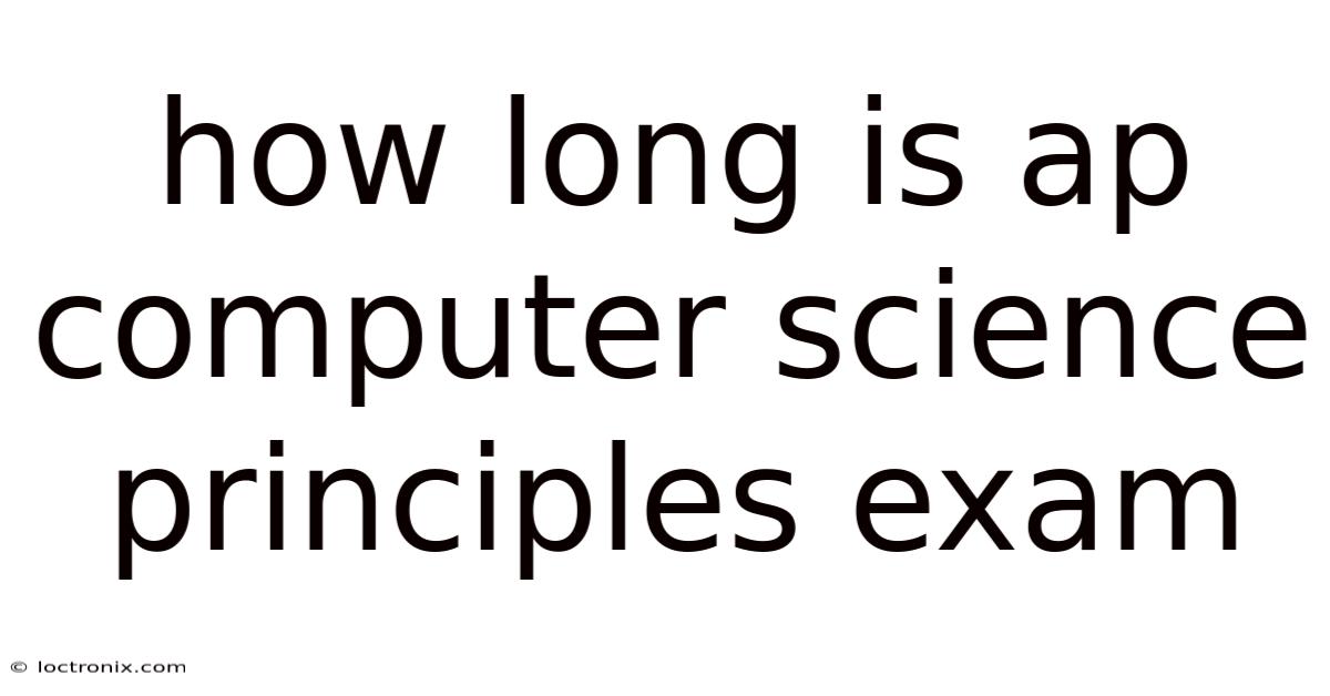 If you are wondering how longis ap computer science principles exam, the answer depends on several factors that we’ll explore in depth. That said, this guide breaks down the total testing time, section‑by‑section timing, break policies, and practical tips to help you manage the clock on test day. By the end, you’ll have a clear picture of the exam’s schedule and strategies to maximize your performance Most people skip this — try not to..