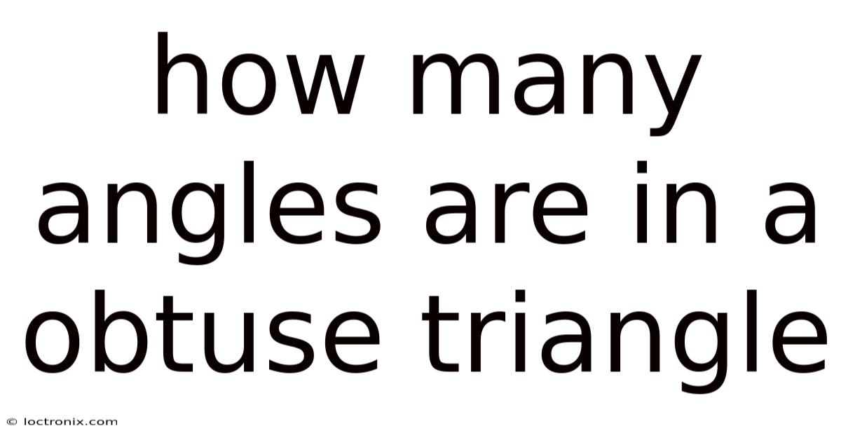 The question "how many angles are in an obtuse triangle?Plus, " has a definitive and simple answer: **three angles. Consider this: understanding this basic property reinforces the universal principle that every triangle, whether acute, right, or obtuse, is defined by its three angles. An obtuse triangle is distinguished by the presence of one angle that exceeds 90 degrees, which necessitates that the other two angles are both acute and together sum to less than 90 degrees. Also, ** This is a fundamental truth of geometry that applies to all triangles, regardless of their specific angle measurements. Recognizing this constancy amidst the variation in angle sizes is key to mastering geometric concepts.