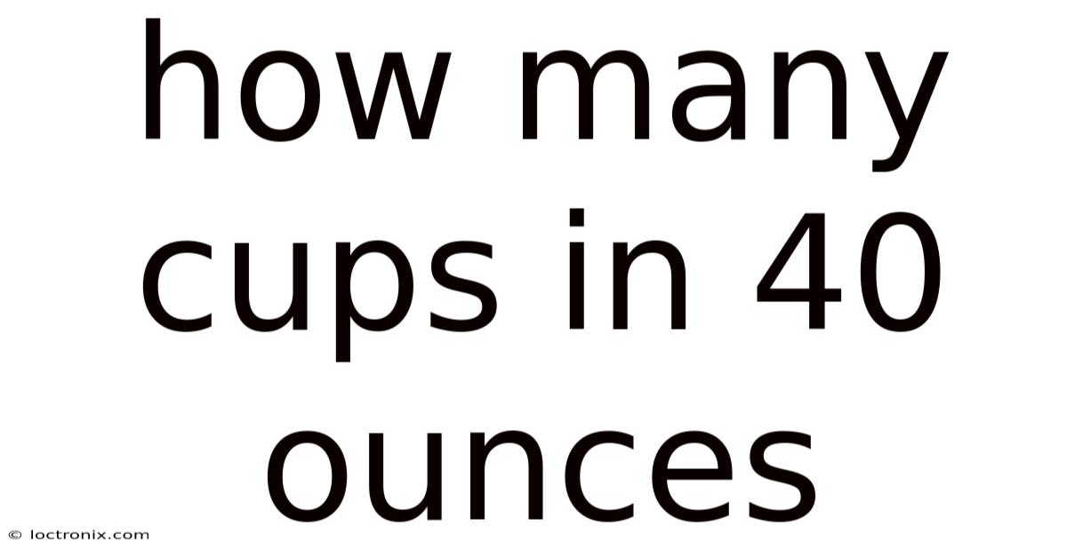 If you can remember that 8 oz = 1 cup, just halve the number of ounces twice: 40 oz → 20 oz (half) → 10 oz (half again) → 5 cups.