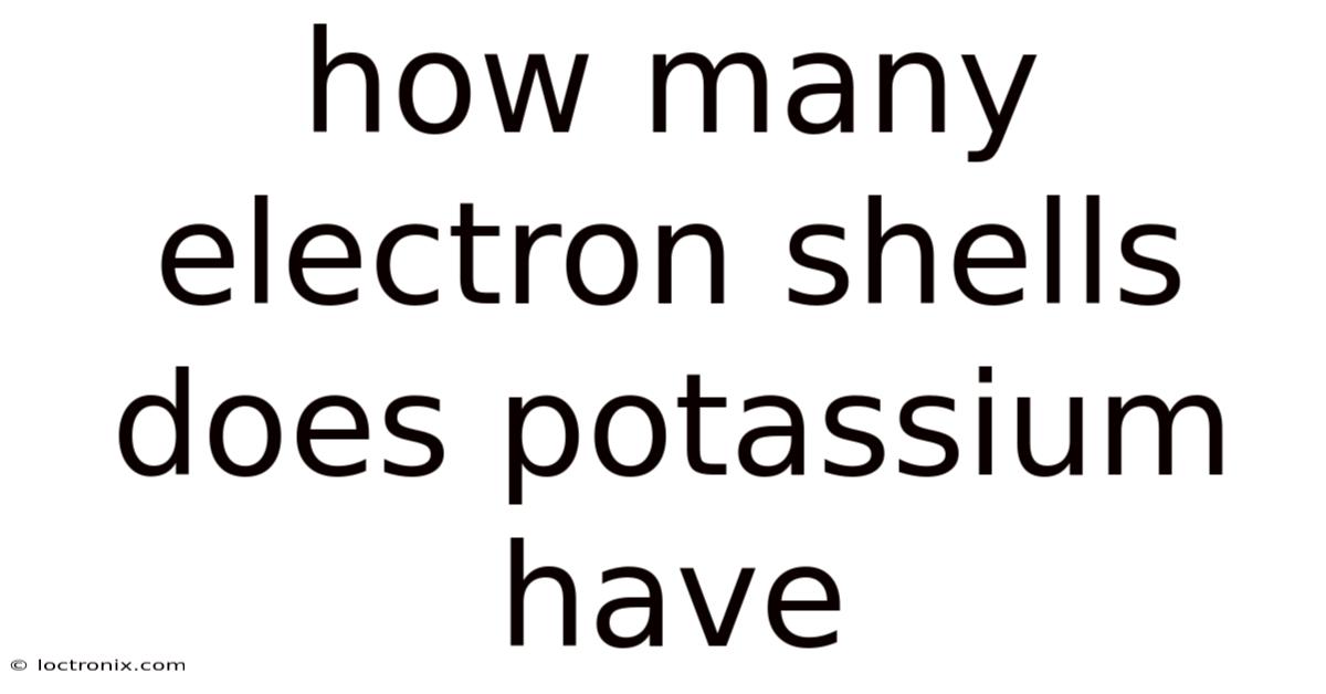 Therefore, potassium has four electron shells. The outermost shell, or valence shell, contains just one electron, which is why potassium is highly reactive and readily loses this electron to form a +1 ion.