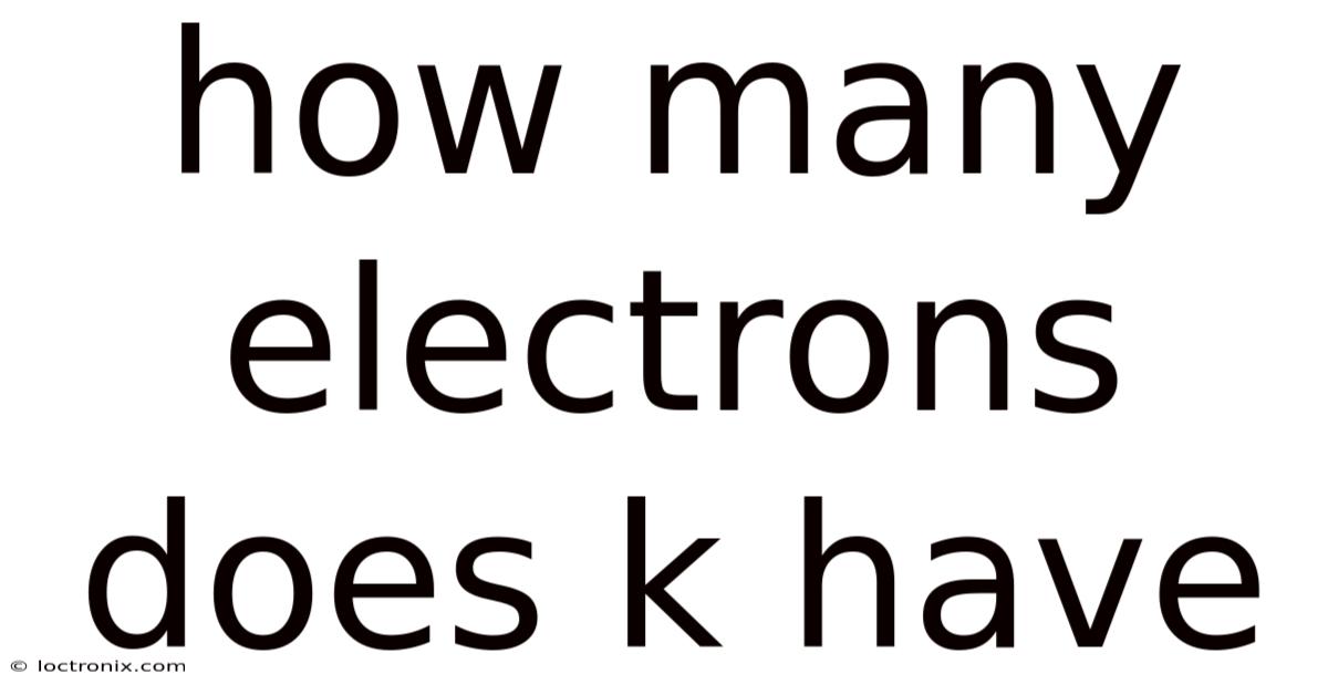 Finding out how many electrons does K have starts with recognizing potassium as a fundamental building block of matter that quietly powers life and technology. From the impulses traveling along nerves to the batteries running portable devices, potassium plays a role that is small in size but enormous in impact. Understanding its electron count is not just a chemistry exercise but a doorway to grasping how elements behave, bond, and create the world around us Not complicated — just consistent..