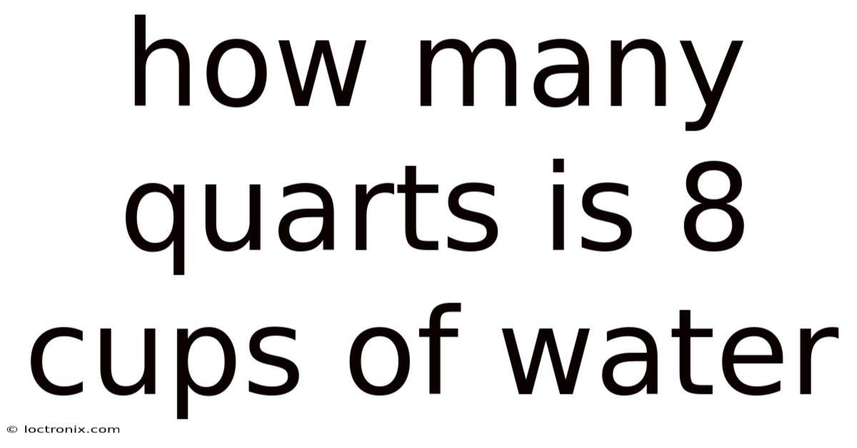 To find out how many quarts are in 8 cups of water, we simply divide the number of cups by the number of cups in a quart: