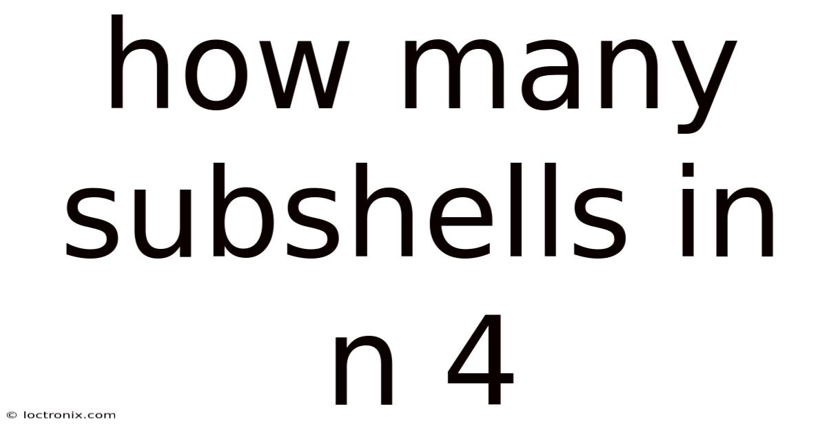 Determining how many subshells in n 4 – and, more generally, for any principal quantum number n – is a fundamental concept in chemistry. In real terms, the simple relationship that the number of subshells equals n unlocks a deeper understanding of atomic structure, electron configuration, and the periodic trends that govern the properties of elements. Think about it: this knowledge isn’t merely theoretical; it has far-reaching implications for diverse fields like spectroscopy, chemical bonding, and materials science, enabling us to predict and manipulate the behavior of matter at the atomic level. The systematic organization of electrons into these subshells provides the framework for understanding the rich diversity and complexity of the chemical world Simple, but easy to overlook. But it adds up..
