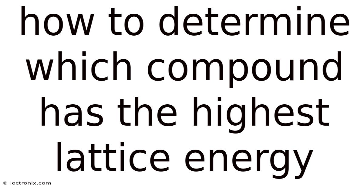 Determining which ioniccompound possesses the highest lattice energy is a fundamental skill in understanding the stability and properties of ionic solids. Lattice energy, the energy released when gaseous ions combine to form a crystalline ionic compound, is a critical measure of the strength of the electrostatic forces holding the crystal lattice together. While calculating it directly for every compound is impractical, understanding the key factors influencing it allows chemists to predict relative lattice energies effectively. This article provides a clear, step-by-step guide to making this determination, grounded in the principles of Coulomb's Law and ionic properties Surprisingly effective..