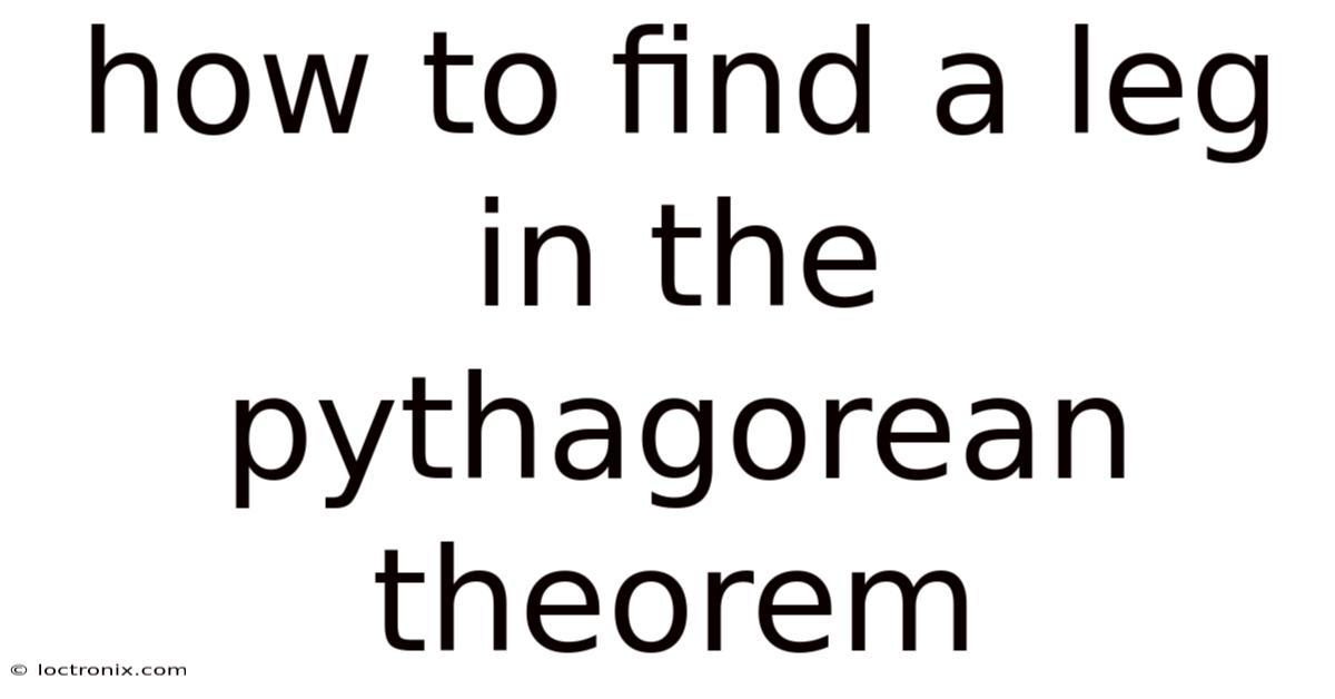 The Pythagorean theorem is one of the most fundamental principles in geometry, often introduced to students as a tool for solving problems involving right-angled triangles. Which means at its core, the theorem states that in a right triangle, the square of the hypotenuse (the side opposite the right angle) is equal to the sum of the squares of the other two sides, known as the legs. Even so, many learners struggle when they need to reverse-engineer the formula to find a missing leg instead of the hypotenuse. This article will guide you through the process of determining the length of a leg using the Pythagorean theorem, breaking down the steps, explaining the underlying principles, and addressing common questions.