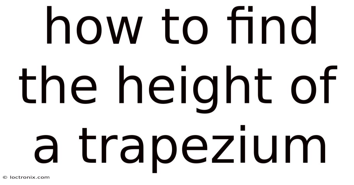 Steps to Find the Height of a Trapezium Depending on the information you have, you can use one of several approaches. The most common scenarios are outlined below.