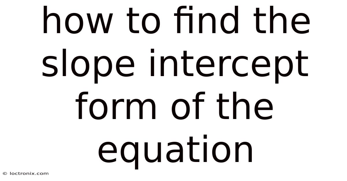 How To Find The Slope Intercept Form Of The Equation