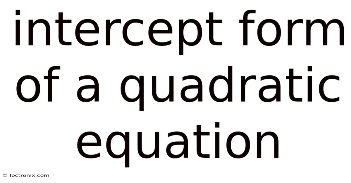 What is the intercept form of a quadratic equation? It is a way of writing a quadratic function as f(x) = a(x - p)(x - q), where p and q are the x-intercepts.