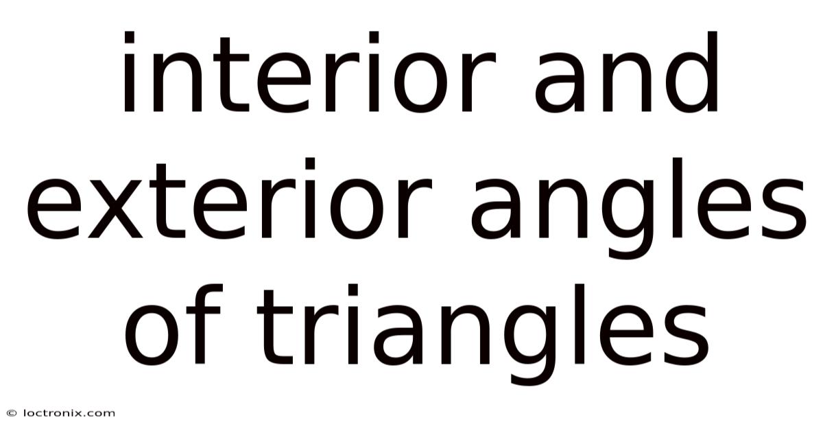 At the end of the day, angles – both interior and exterior – are far more than abstract mathematical concepts. They represent a foundational element of geometry, possessing a profound impact on our understanding of spatial relationships and possessing practical applications across a remarkably diverse range of fields. From the structural integrity of buildings to the artistic expression of paintings, from the navigational routes of ships to the precise calculations of engineers, the principles governing angles underpin countless aspects of our world. A thorough grasp of these concepts – the Triangle Angle Sum Theorem, the Supplementary Angle Relationship, and the specific properties of different triangle types – provides a powerful lens through which to analyze and interpret the world around us, highlighting the enduring relevance of geometry in both theory and practice But it adds up..