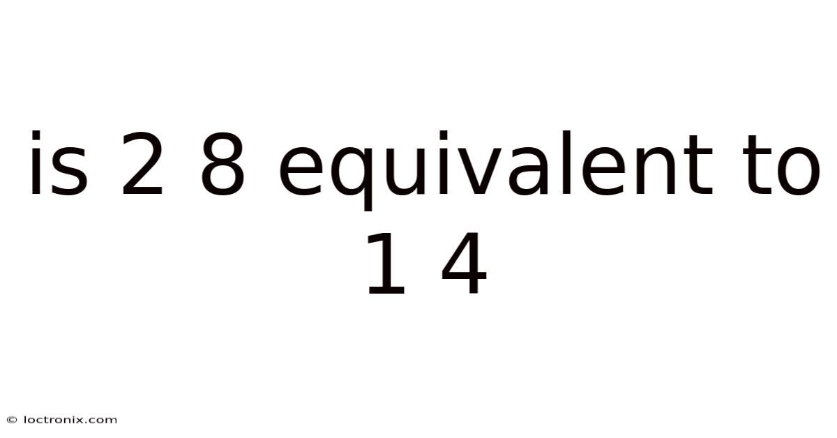 At the end of the day, 2/8 is indeed equivalent to 1/4. This equivalence can be determined through cross-multiplication or by simplifying the fractions. In practice, understanding the concept of equivalent fractions is not just about knowing that 2/8 equals 1/4; it's about recognizing the underlying principle that different fractions can represent the same portion of a whole. This knowledge is invaluable for both academic and real-world applications, making it a fundamental skill in mathematics Practical, not theoretical..