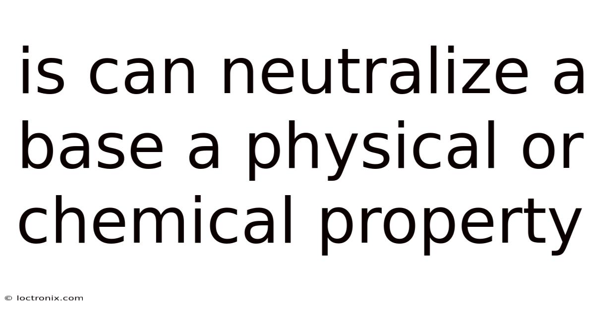 Understanding the Nature of Acid-Base Neutralization: A Physical or Chemical Property?